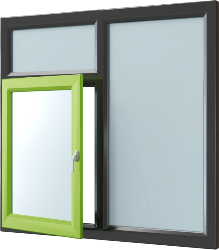 Ons aluminium draaikiep- en vast raamkozijn met bovenlicht wordt volledig op maat samengesteld in het hoogwaardige Aliplast- of Aluprof-profielsysteem. Dit kozijn combineert een draaikiepraam, een vast glasvak en een praktisch bovenlicht voor extra lichtinval. Je kiest uit HR++ dubbel glas of HR+++ triple glas, eventueel uitgevoerd met veiligheidsglas. Het kozijn is leverbaar in diverse kleuren en wordt afgewerkt met een duurzame matte of structuurcoating. Stel eenvoudig je ideale raamkozijn samen.
